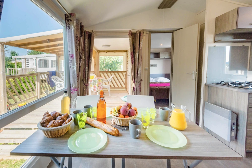 Mobil-homes avec vue, premium, tout équipé, lits faits à l’arrivée, un bonheur.